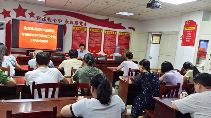 宜宾市第三中医医院党支部书记晁中云表示,医院全体干部职工要将学习宣传贯彻党的二十届三中全会精神作为当前和今后一个时期的重大政治任务;要在学科能力建设、人才队伍建设、三级乙等中医院创建等方面谋实举措,真抓实干;要坚持读原著、学原文、悟原理,吃透精神内涵,将学习贯彻全会精神与推动工作紧密结合,以学习成果推动工作落地见效,为推动医院高质量发展贡献力量。