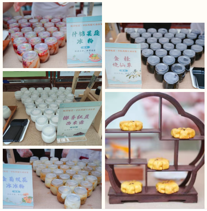 药膳体验区香气四溢,金菊双花冰冰粉(清热消暑,解毒利咽)、什锦果蔬冰粉(解暑生津,开胃消食)、金桂烧仙草(清热利湿,醒脾和中)、椰香红豆西米露(生津健脾,利湿和中)等多款精心研制的养生药膳,让参与者在品尝美味的同时,学习健康养生知识。现场还设置了养生茶饮、药膳点心品尝区,西南医科大学附属中医医院医护人员现场讲解其功效与制作方法。此外,现场集赞领线香等互动环节亦获得参与者广泛好评。
